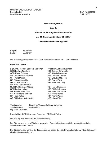1 Marktgemeinde Pottendorf Bezirk Baden Dvr Nr